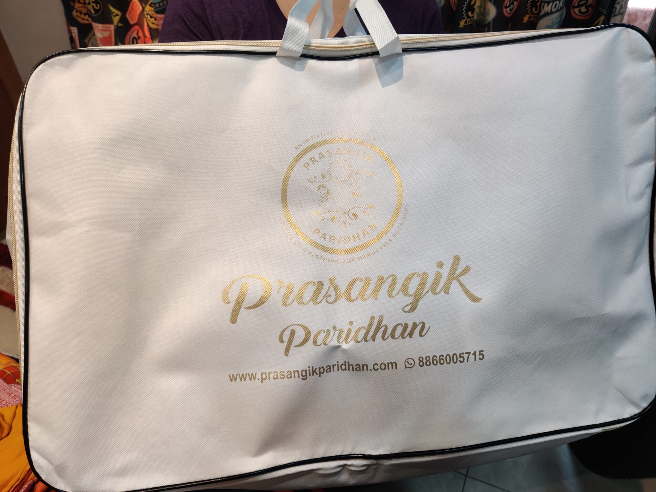 Tailored for a size 40 fit, this outfit delivers structure, comfort, and refined charm — ideal for festive gatherings, and formal cultural events. Part of Prasangik Paridhan’s Premiere Collection, this ensemble captures the essence of luxury, artistry, and timeless Indian tradition.