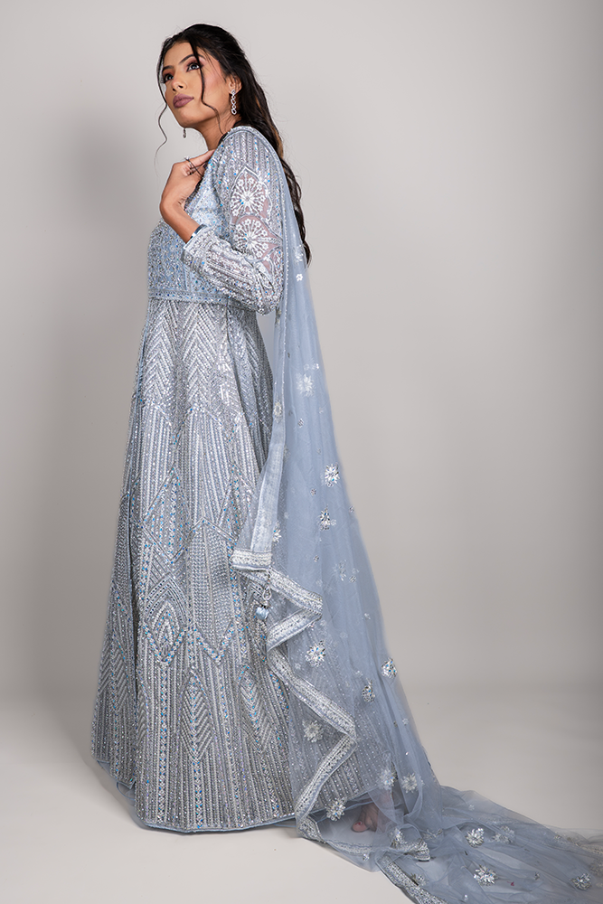 • Dupatta: Includes a finely embroidered grey shimmer organza dupatta that adds a soft, ethereal finish.