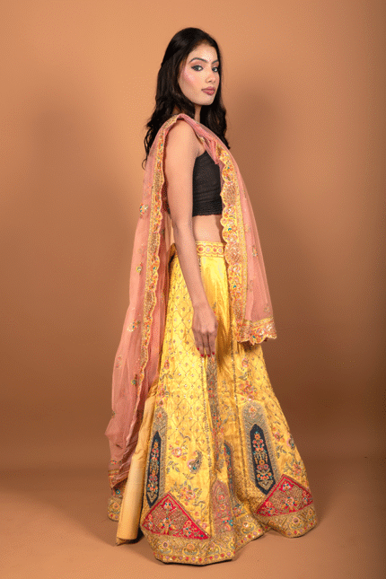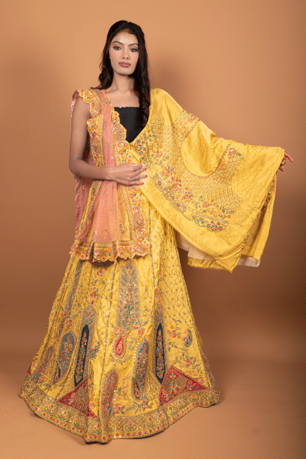 Pink Bridal Zardozi Embroidered Lehenga with Velvet Blouse & Dual Dupattas